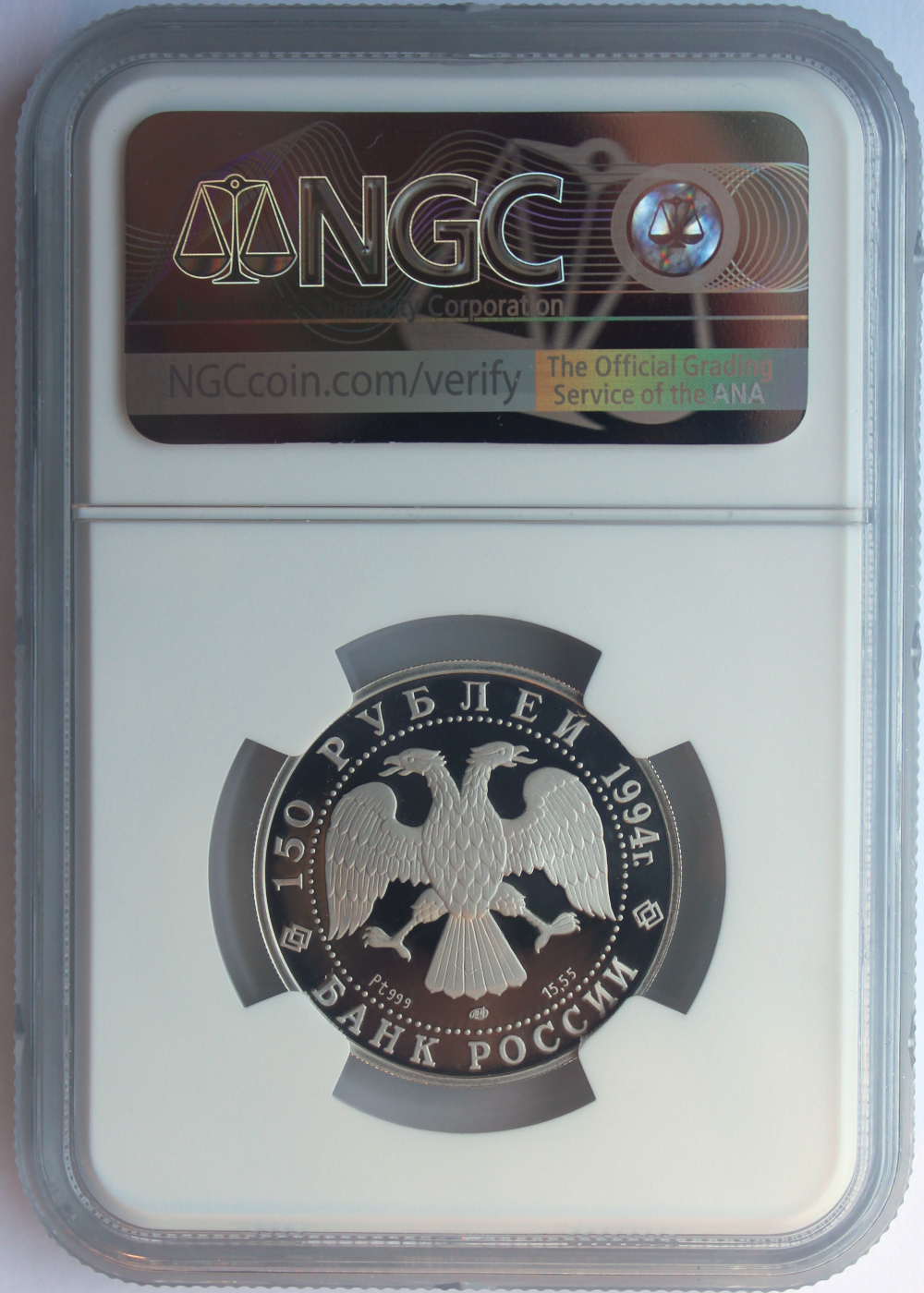 1994 1/2 Oz. PLATINUM 150 ROUBLES, BALLERINA. MINT ERROR. NGC PF-69UCAM -