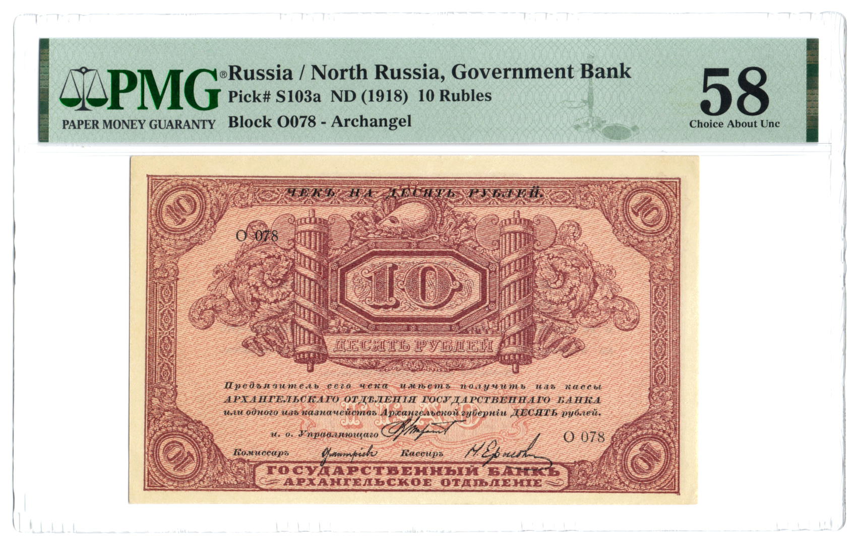 RUSSIA, NORTH RUSSIA, ARCHANGEL 1918 3, 5, 10 RUBLES. PMG-58, PMG-64EPQ, PMG-58.