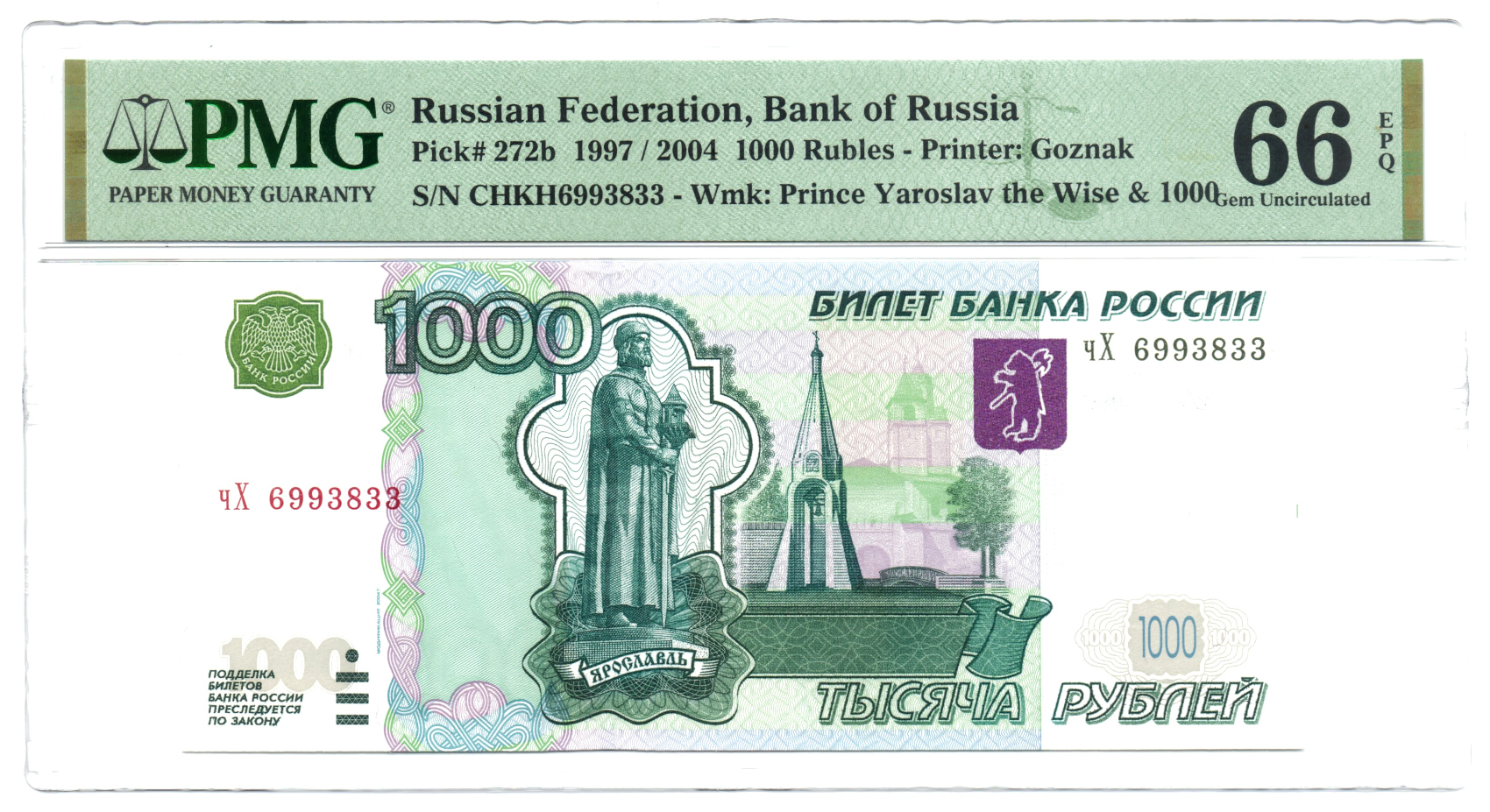 RUSSIAN FEDERATION, BANK OF RUSSIA 1997 (2004) 1000 RUBLES. PMG-66EPQ. P-272b.