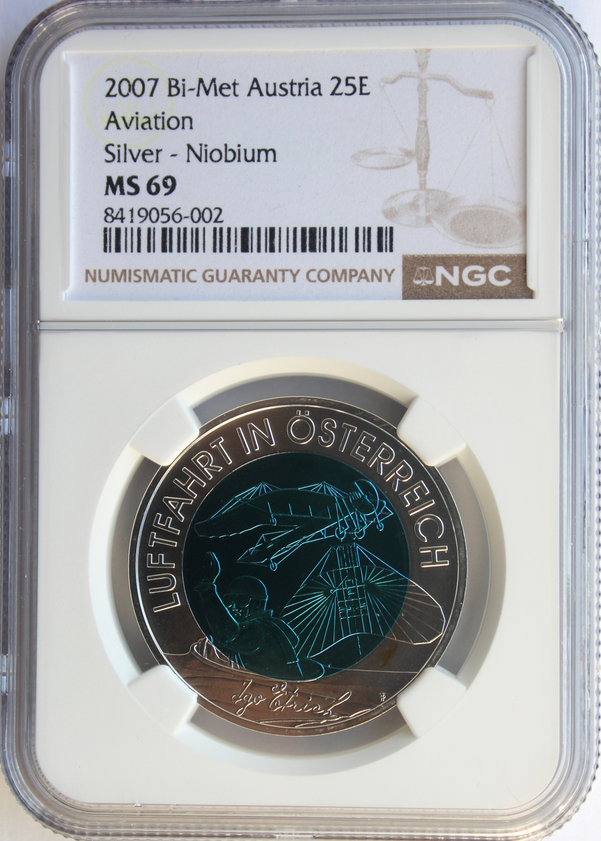 - 9.000 gram, Niobium - 7.15 gram. Diameter: 34 mm